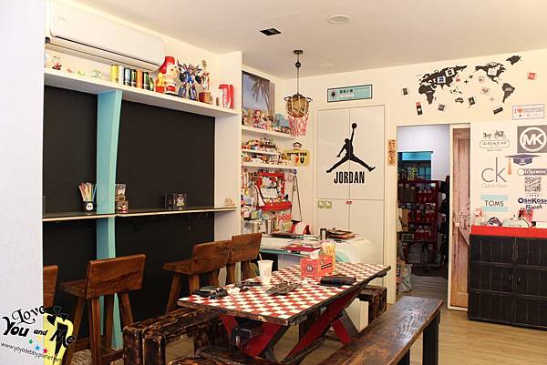 店內的裝飾的有一個很特別的籃球燈, 還有一些老闆自己個人的收藏。 老闆也宣導除了飲食健康之外, 身體也要運動的健康概念喔~