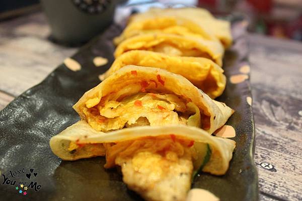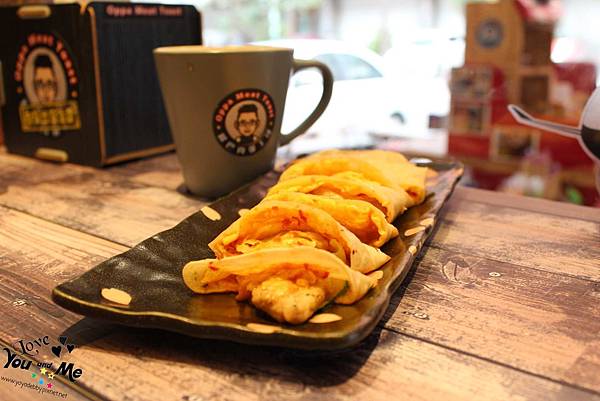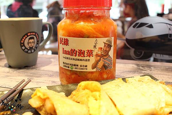 他的歐巴泡菜肉排蛋餅-- 它是和藝人民雄合作 ,用自己手醃的泡菜不加任何防腐劑。 而且泡菜有豆腐乳的味道, 他以一般傳統的蛋餅再加上自己醃製的肉排、 泡菜, 吃起來不但有肉的鮮甜度加上泡菜的搭配 ,形成絕佳的美味!