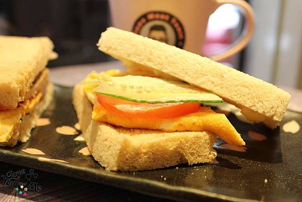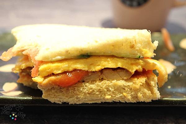 麵包的部分是非常不一樣的, 吃起來Q彈而且有嚼勁。 以一片白麵包及一片全麥麵包去搭配, 形成不一樣的配色。