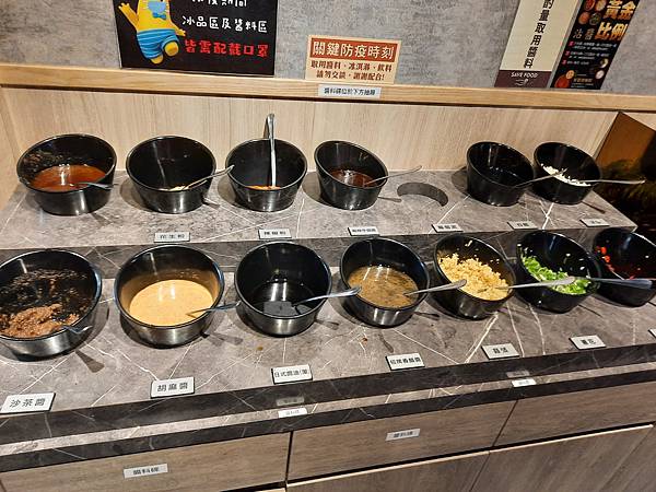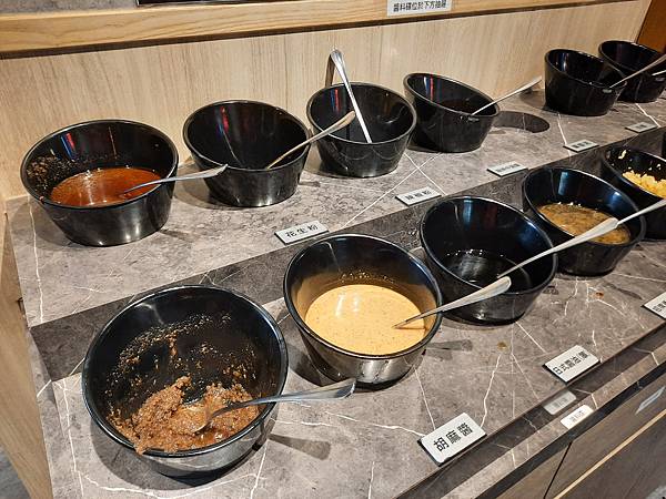 不過我的最愛還是芝麻醬, 這邊不但有我愛的芝麻醬、 還有豆乳醬、 另外還有花生粉阿~~ 這些就加分不少 !! 所以今天我就調配了芝麻醬加花生粉 。再調一個蒜蓉+豆乳醬+芝麻醬
