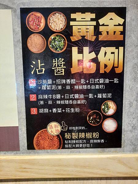 這個讓我蠻驚訝的是他的沾醬竟然多達十幾種的選擇 可讓你自己調配, 還有黃金比例讓你參考。