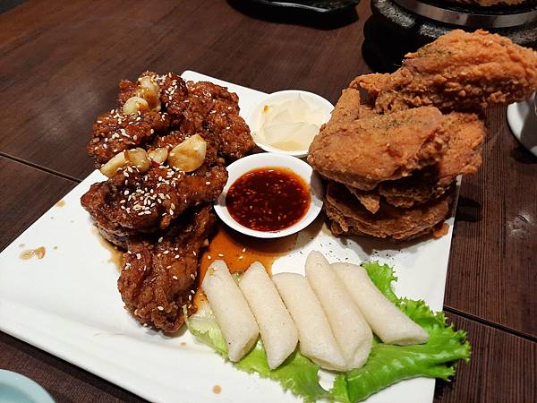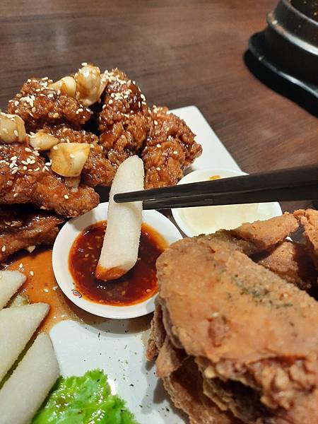 雙享韓式炸雞可以一次吃到兩種口味,我們選的是原味+蜂蜜蒜味炸雞,