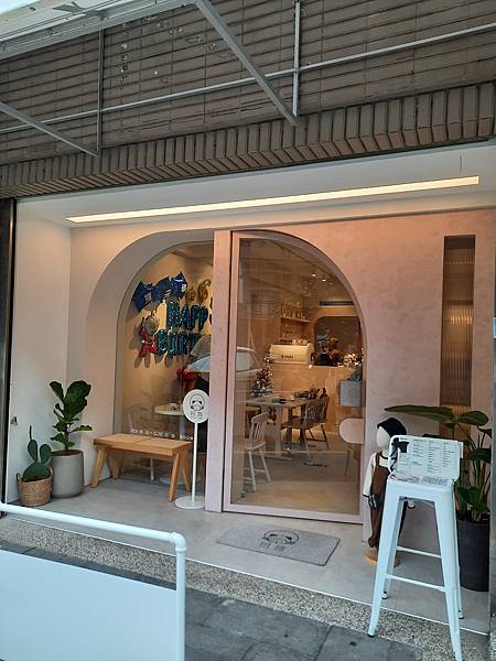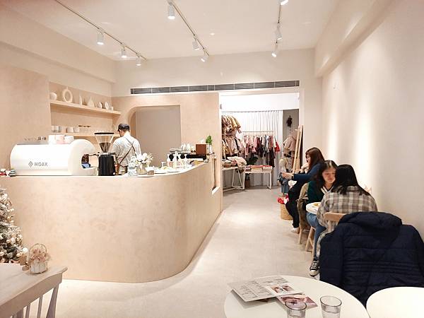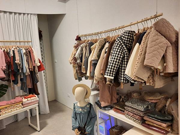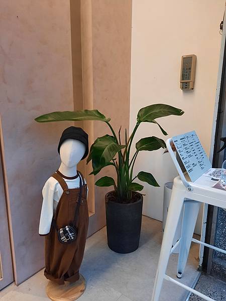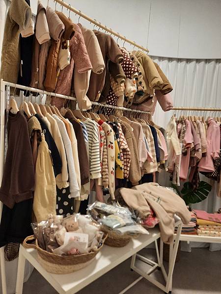 店門口的裝潢相當吸引人,以純白色系配上淡粉色的柔和裝潢柔和背上圓弧形的大門造型門口還擺放了可愛的童裝麻豆,