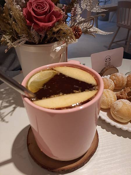 水果茶 裡面有搭配了韓國蘋果醬~~ 跟柚子醬比起來 , 我還是喜歡蘋果醬阿~~