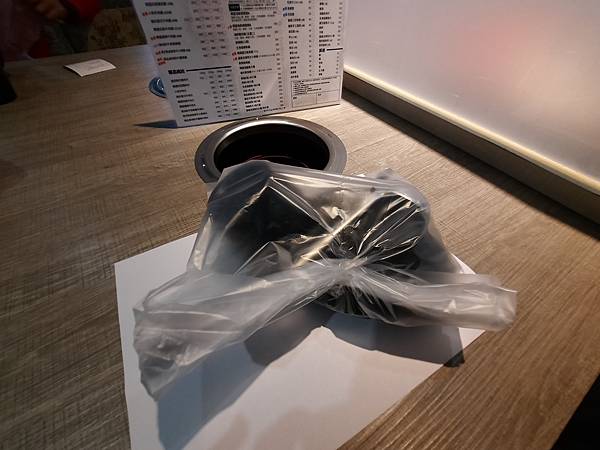 桌上的餐具都是先包在塑膠袋裡的,包括杯子也是喔~~