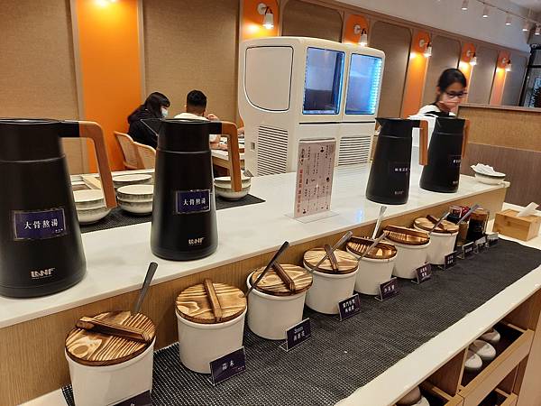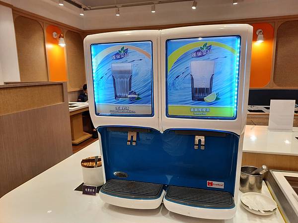 中間一樣有自助區,包含整齊排列的醬料區與飲料區,