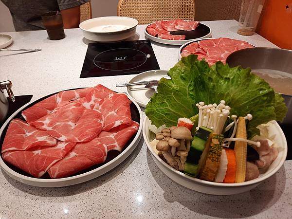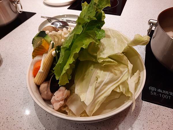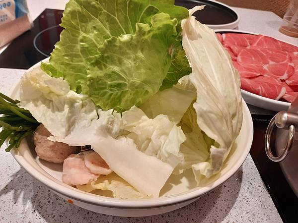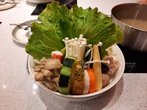 這裡的菜盤沒有太多火鍋料, 比較特別的是蔬菜的種類有水蓮、青江菜、大白菜、高麗菜4種不同葉菜,這個有用心喔~~