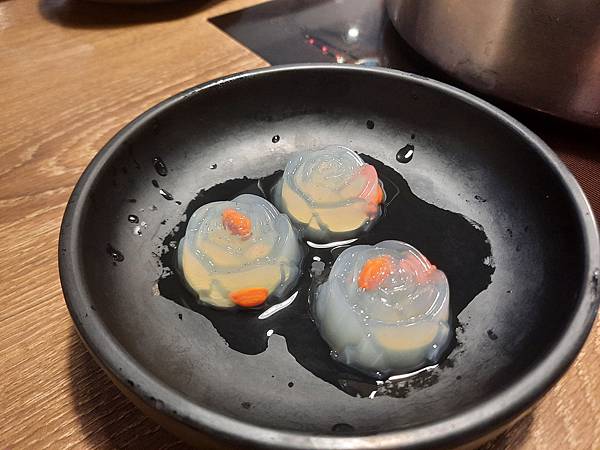 膠原蛋白說是有海鮮的成份湯底~ ( 做成3朵花的樣式 )