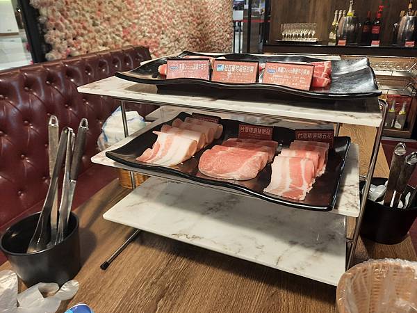 桌面旁有白鐵層架能讓肉盤疊高,充份節省了空間,即使叫一整桌也不會擺不下,所以可以放心的用力點大口吃了!