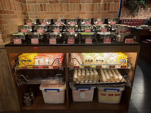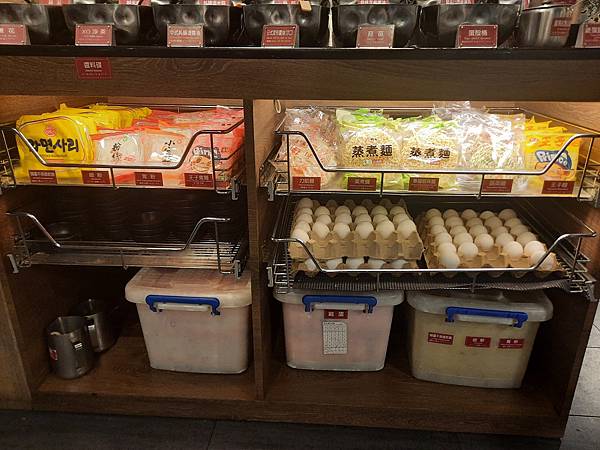 醬料台底下則是擺滿了各式麵類和雞蛋,麵類也有多種可選擇阿!!! 有需要的人請自取。