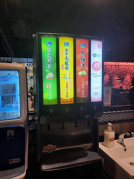 中間就是無限暢飲區,飲品跟冰淇淋,看得到的都可以無限喝到飽。