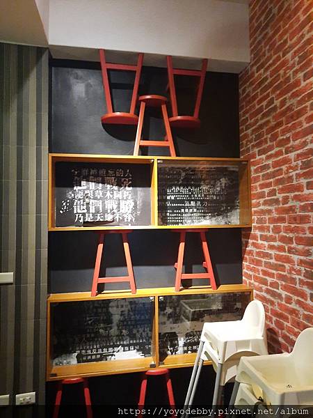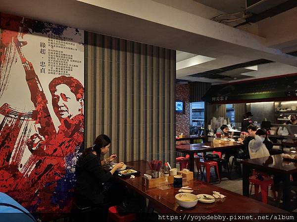 牆面全部以眷村與當年撤退來台的異域孤軍介紹為主題,將從前的歷史畫在牆面及天花板上