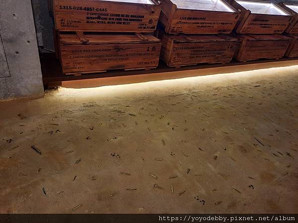 這裡的地板上有各種子彈,地雷穿插在其中,引領大家進入到戰場,那段槍林彈雨,槍口舔血的年代。