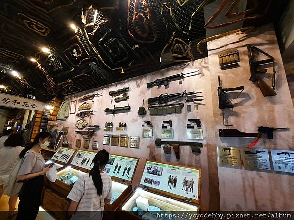 牆上還展示了各種槍枝,也有介紹各年代時期軍裝