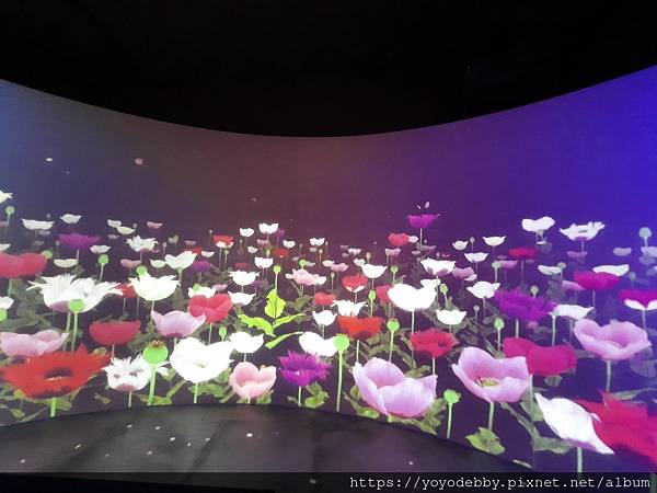 在中間的機台上選擇你喜歡花的顏色跟祝福小語及名字 就會產生屬於你的花開花謝影片到中間大螢幕上