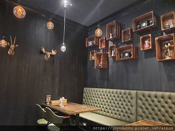 木質地板、餐桌以及燈光設計讓店內有著溫馨氛圍,搭配帶有懷舊古典風格擺飾,
