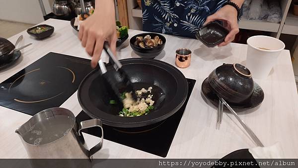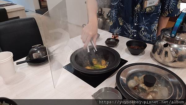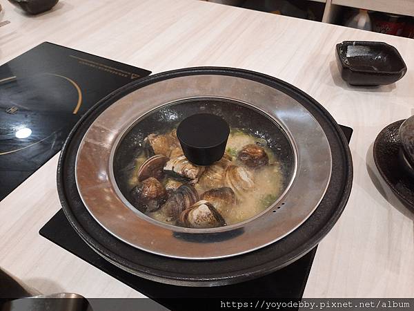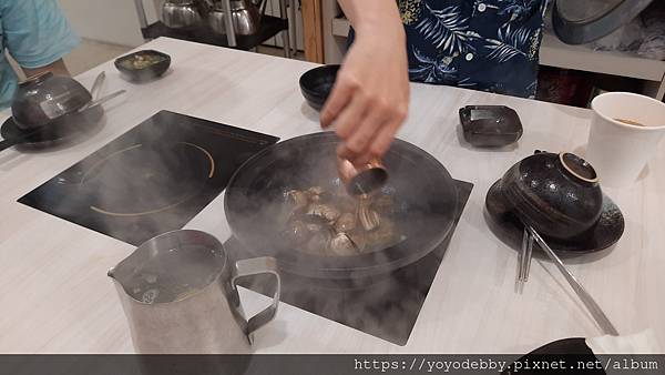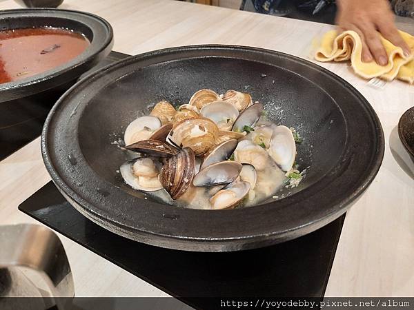 服務生建議先吃蛤蜊後再把高湯加到鍋內