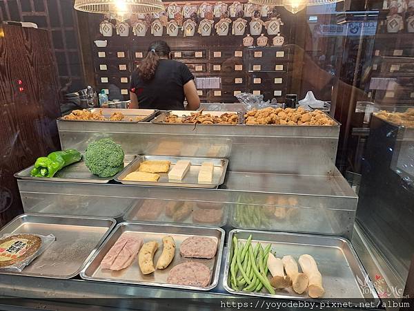 食材都是在透明櫃內 由服務人員幫忙夾取