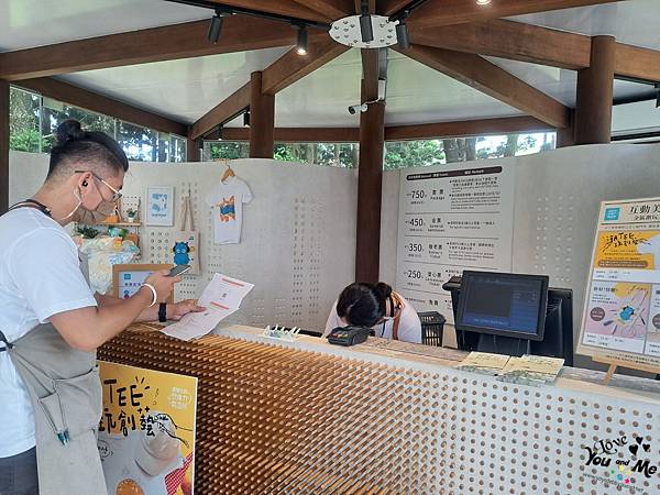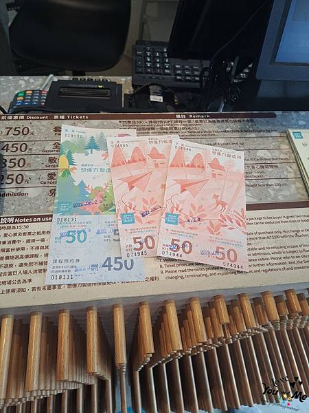 我們買了一張套票、兩張全票,在大廳驗票後,櫃臺人員協助及講解今天課程服務,並給我們每人一份彩色筆材料,並且預約手作課程時間,與館內導覽服務。