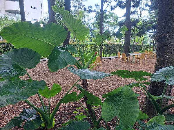 但右邊樹下有擺放一些桌椅,更貼心的是樹上有架噴霧器,不定時會噴出水霧,不但降溫更有煙霧迷濛夢幻的感覺啊~~