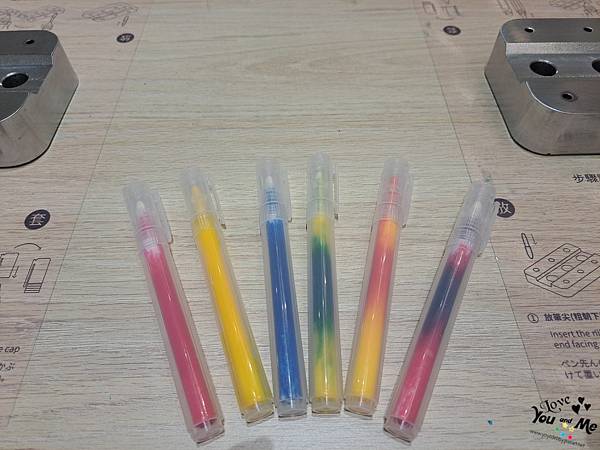 購買門票時,給的材料包就是製作彩色筆的材料,導覽老師會一一教學,剛好我們有6枝筆,所以就可以包色啦!!