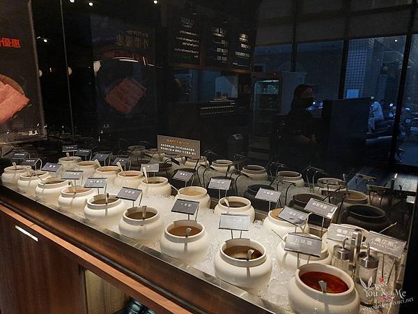 有豆腐乳、泰式酸辣醬、胡麻醬、特製辣醬、鎮江醋、山葵美乃滋、五味醬、蒜蓉醬、橙醋醬、水果醋、柚子醬油,