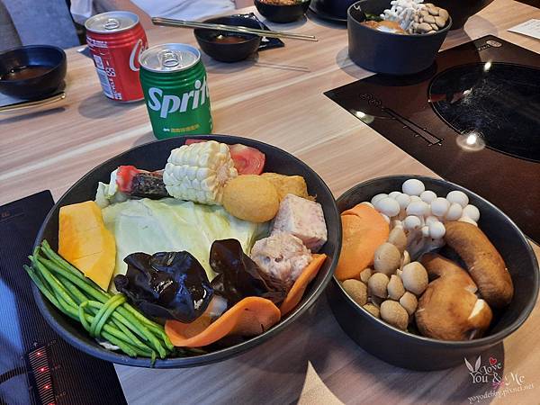 像菜盤也相當澎湃,蔬菜也都有嚴選過,很特別的是菜盤一份跟菇碗一份