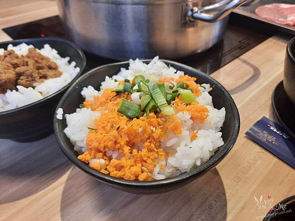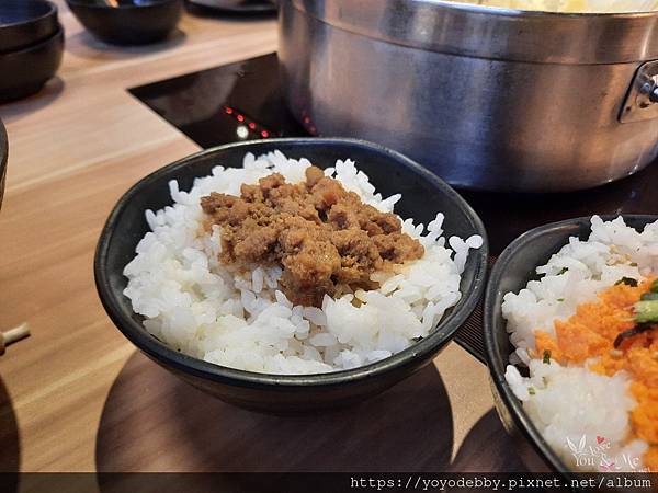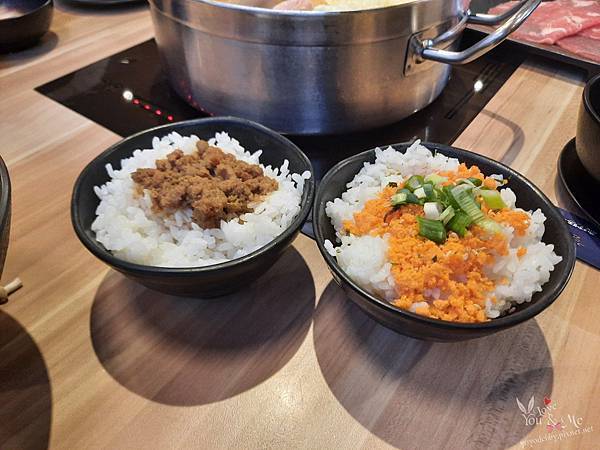 我們選擇了 和牛魯肉飯(限量)、鮭魚鬆飯、麵疙瘩 (這幾個比較特殊 外面火鍋店沒有這樣的附餐)