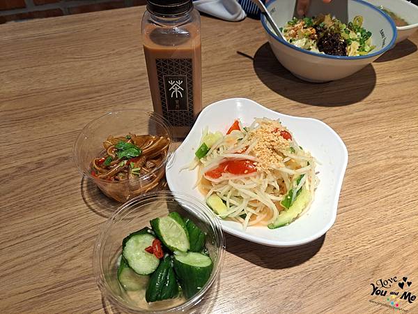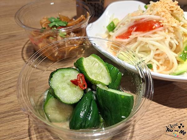另外搭配小菜 - 青木瓜絲 小黃瓜 豬耳朵