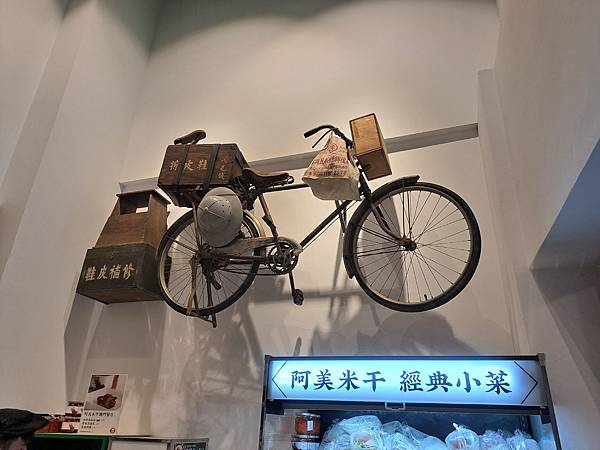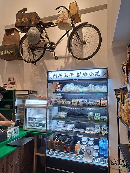 櫃台的旁邊牆面上空還擺放了一輛有年代感的腳踏車當裝飾品!!