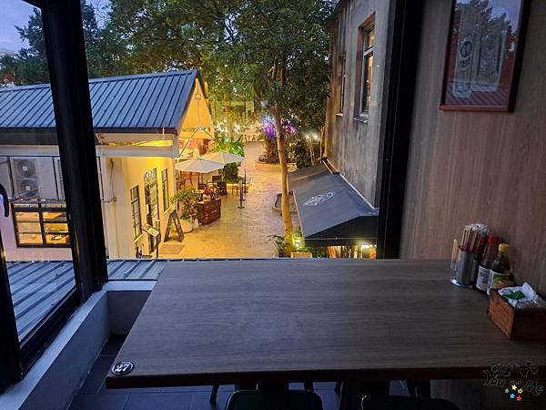 這邊的座位區出去就是忠貞新村文化園區的癮食聖堂-POPPY CHURCH,晚上這邊的裝飾燈亮起,把這裡點綴的好有氣氛!坐在窗邊吃飯還可以看看夜景真不錯~~