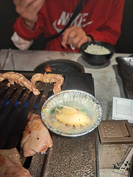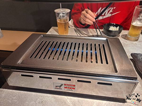 桌上的長方形日本新式烤爐,用這個烤肉真的火侯比較好拿捏,連我們家小孩也化身為燒肉大師啦!!