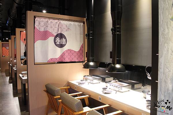 硬體設備很有現代科技感,但裝潢就是走日式風格,利用淺木色的座椅及隔間,讓黑色的店面中增添亮色系的活潑元素,再搭配牆面上的店名藝術木框及座位隔間中流動的店名藝術布簾,讓一切都生動起來了!