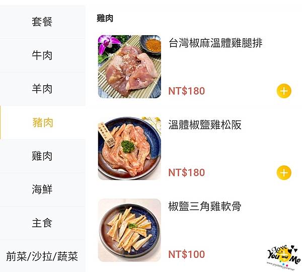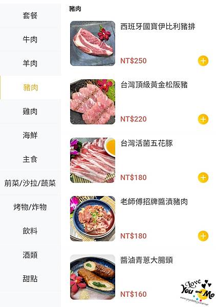 套餐—主餐肉品 西班牙伊比利梅花豚、台灣活菌五花豚、台灣頂級黃金松阪豬、溫體椒鹽雞松阪