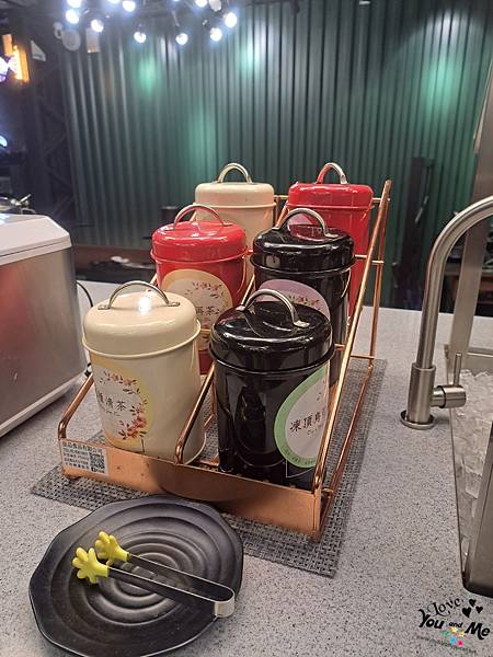 中間是吧台區。高鼎屋鍋物的飲料現在增加非常多樣,熱冷都有,特別的是熱飲除了咖啡跟茶外,茶包還有六種口味可以選擇。
