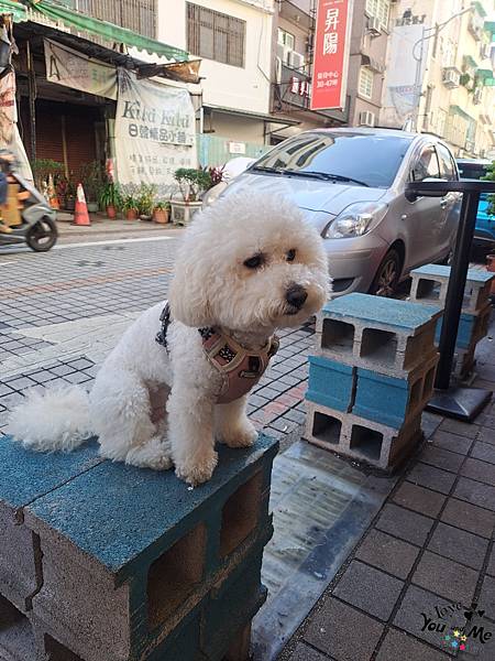 我們只好坐在旁邊跟老闆的狗狗玩~~