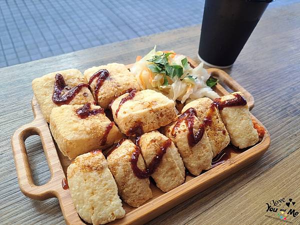 一上桌,有沒感覺很文青 ?? 老闆還用木盤裝酥脆臭豆腐,而且加上擺盤。有沒有就變得超有質感的??