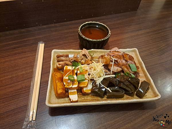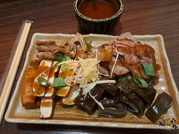 除了可選擇的小菜他還會上一盤固定的黑白切小菜,整個套餐的內容物是蠻豐富的。吃的也蠻飽的喔~~
