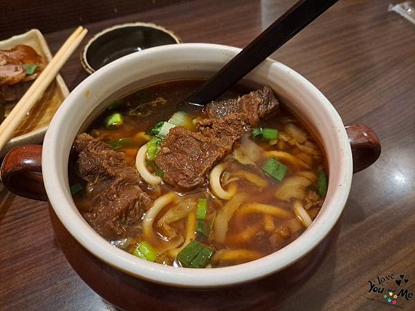 有附幾塊牛肉塊,軟硬度適中,不過湯頭熬得沒有我媽好吃~~ 哈哈哈~~ 醬油味比較重一點!!
