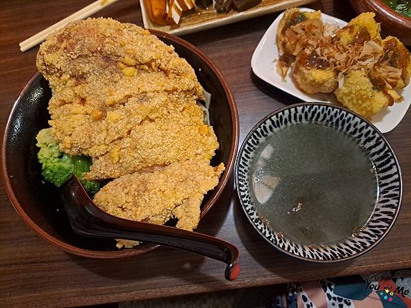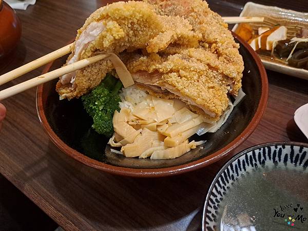 雞排炸得很酥脆且大塊,但骨頭挺多的!! 配菜很簡單- 花椰菜+筍絲+麵筋