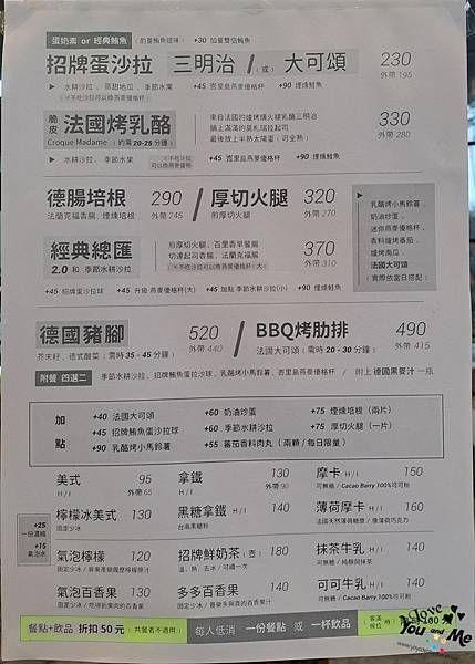 這邊提供的餐點不複雜,很可惜餐點都不附飲料。加點飲料可折抵50元。