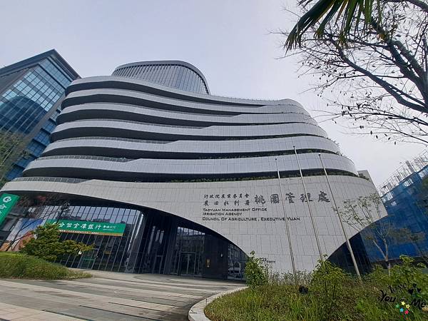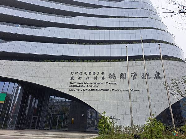 停好車走到水利署,哇~~ 沒想到行政院農業委員會農田水利署桃園管理處(水利署)的外觀這麼有設計感,如果不是有寫中文字,完全看不出來這是棟行政大樓!! 輕綠舍就是藏身在這棟優美有造型的建築物裏。