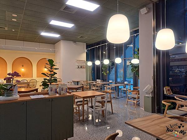 一邊是大片落地窗,透光性很好,連帶讓視野更開闊~ 也讓餐廳有每個時間都會有不同光影的產生。