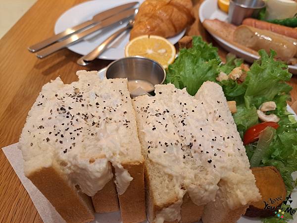 招牌蛋沙拉還可以搭配吐司或鮮蔬沙拉等健康的配菜,讓整體餐點更加均衡和豐富。蛋沙拉,麵包體有三明治&可頌可以選擇。我選的是三明治,滿滿爆漿的蛋沙拉,清爽不膩口,越吃越唰嘴!