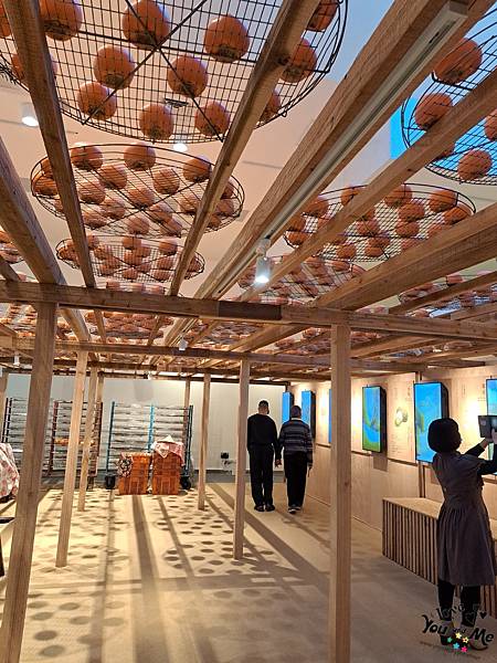 主展區是由桃園市客家事務局籌畫的「客庄四季」展,以客家醬菜、米食及茶葉做為發想,內有客家花布科技互動裝置,其它還有仿曬柿餅的曬柿架場景,更是拍美照的好地方。