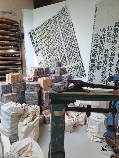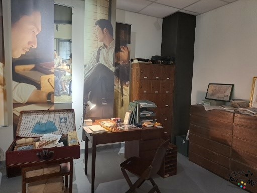 接下來進入到主題展區,目前的是茶金特展~~ 導覽員帶我們進入展覽,裡面有很多劇中場景及道具,還有女主角的服飾展出~~雖然我沒看過這部連續劇,不過聽導覽員講解劇中的重點精華及當時時代的背景及無奈,好像覺得這部歷史劇野蠻好看的~~