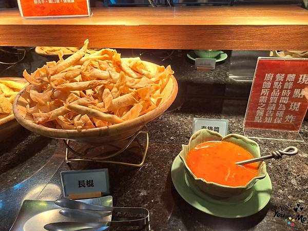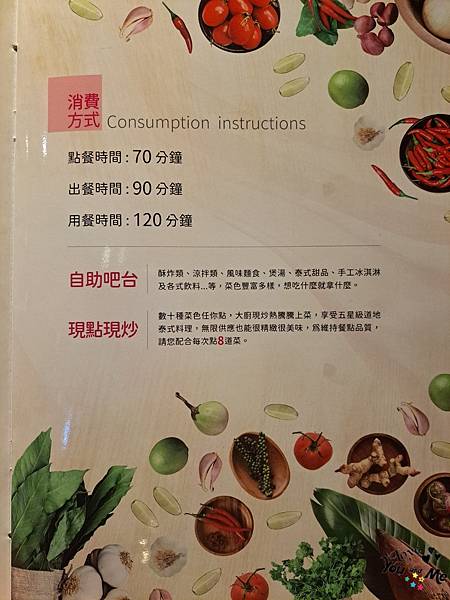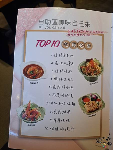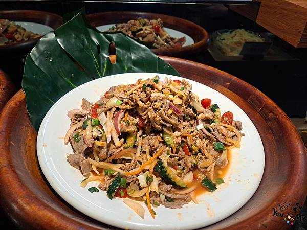 這邊用餐是吃到飽計價,除了有40多種現點現炒的泰式料理無限量供應之外,自助吧台區有泰式春捲、長棍、泰北大薄片、涼拌小菜、涼拌海鮮以及麻辣生蝦等,飲料吧也有泰式奶茶及其他多種飲品可選擇。