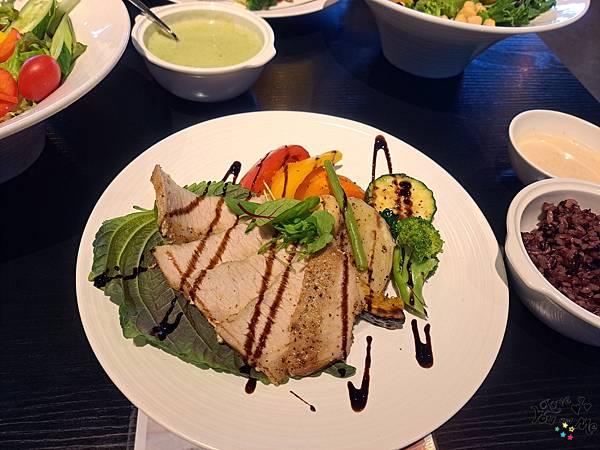 精選沙拉 : 這個是源鮮的主打阿~~ 所有蔬菜都是自家農場生產的,直接送到私廚,產地直送直接上桌,超fresh的。基本提供我愛的胡麻醬。自取區還有別種醬料可選擇喔~~