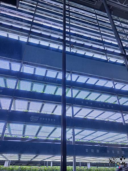 源鮮智慧農場環保科技,建築本身不但是環保綠建築,耕種方式更是採用「iFarming智慧農法」種植技術,也就是所謂的垂直農業,園區內一座巨大的14層垂直層架,超寬闊的「垂直智慧農場」映入眼簾,需要仰頭才能飽覽全貌,十分壯觀。