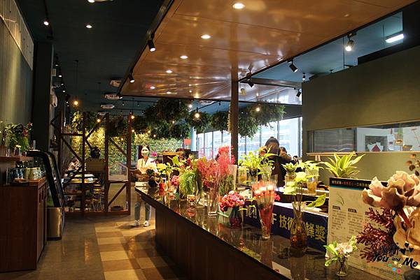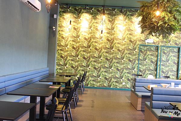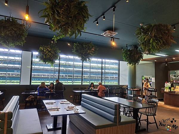 一走進iPaleo私廚餐廳 就感覺到綠意盎然,整個餐廳以綠色系為主,座位寬敞舒適,挑高天花板設計搭配上綠色球狀葉子裝飾,更令人眼睛為之一亮的是—另一側的透明玻璃可以看得到 活舒菜的種植層架耶~~